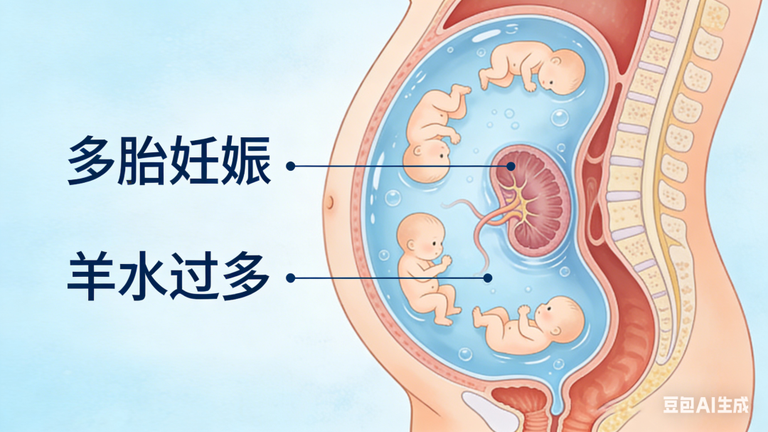 单绒毛膜性双胎风险最高,两个宝宝一起排尿,总量自然多。